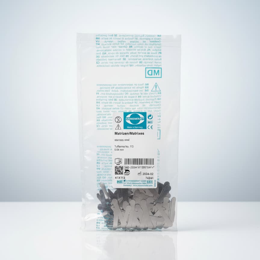 🦷 نوار ماتریس تافل مایر Hahnenkratt محصولی باکیفیت از آلمان است. ⚙️ ساختهشده از استیل ضد زنگ با مقاومت کششی بسیار بالا. 💪 مقاوم در برابر خمیدگی و پارگی، مناسب برای ترمیمهای دقیق دندانی. 📦 شامل ۱۰۰ عدد نوار در مدلهای مختلف برای کاربردهای گوناگون.